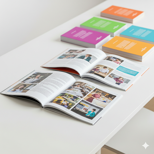 Booklets are versatile, multi-page documents perfect for product guides, magazines, menus, and catalogs. Our full-color booklet printing uses high-quality, glossy paper to ensure your designs look their best. Choose from two popular sizes to create professional booklets that will impress your clients.